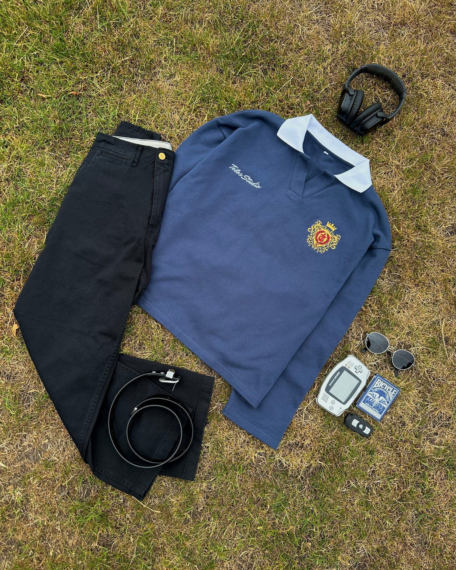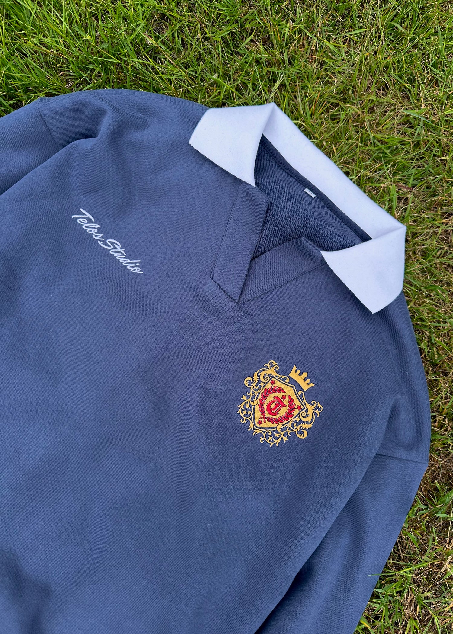 The Crest Polo features an integrated open-neck collar for a relaxed touch, dropped shoulders for a laid-back drape, and a slightly cropped fit that gives it a modern silhouette. Finished with embroidered script and crest logos, it blends comfort, craftsmanship, and contemporary style for your everyday lifestyle.